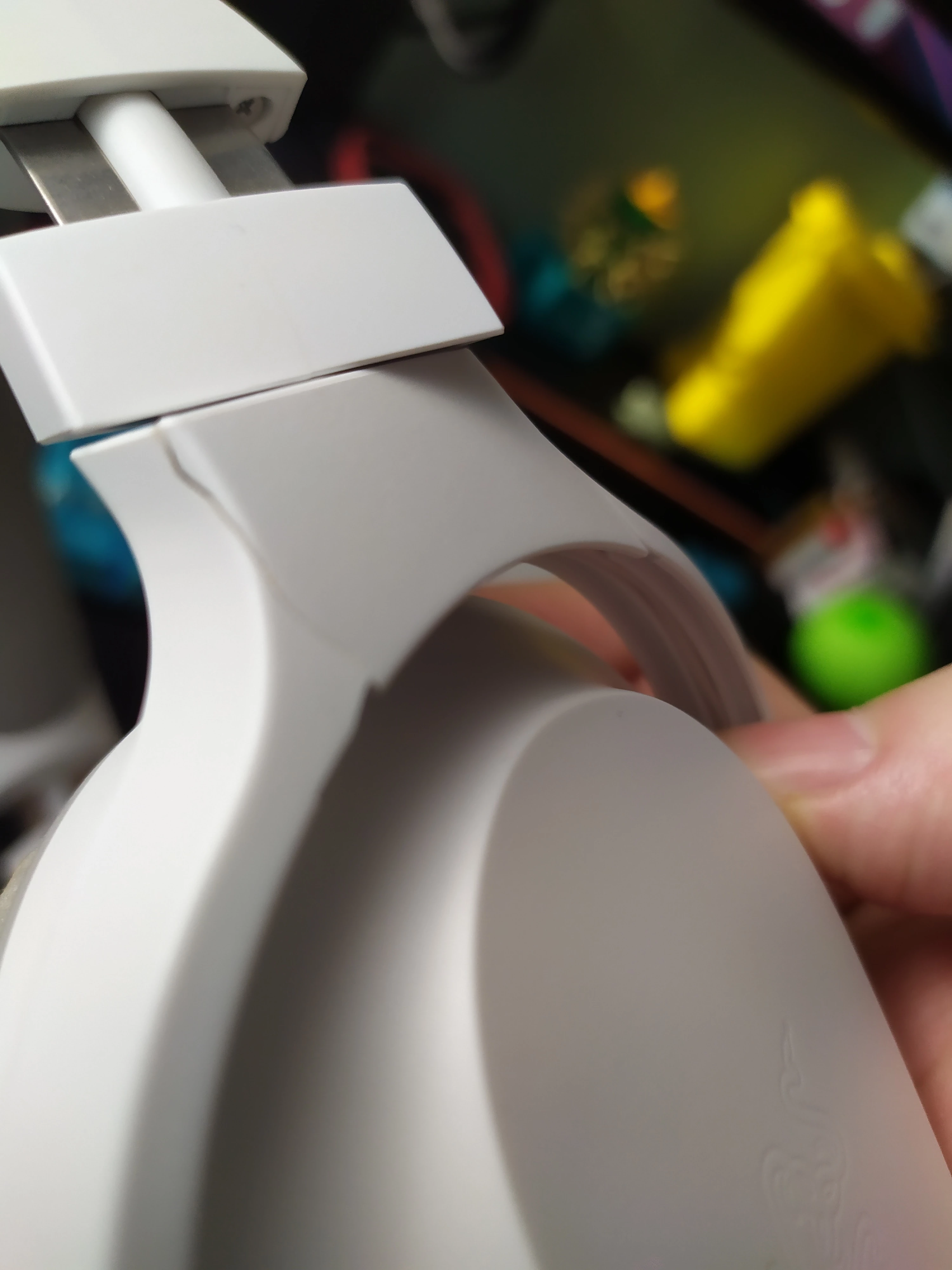 Here are the pictures of broken plastic parts, first is the left earpiece, the second is the right earpiece