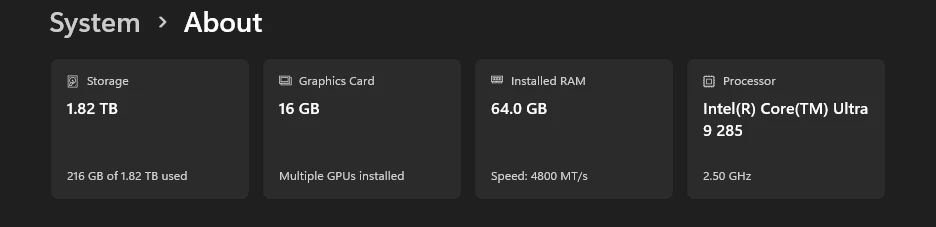 Processor Intel(R) Core(TM) Ultra 9 285 (2.50 GHz)