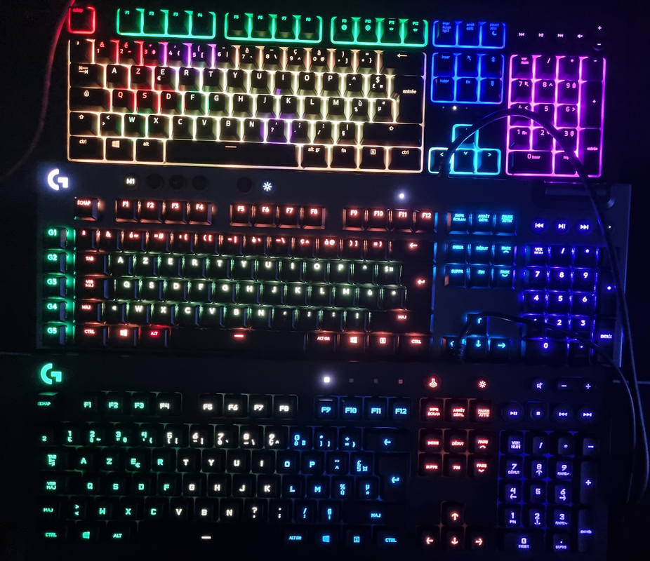 From top to bottom, Razer Cynosa, Logitech G815, Logitech G213.
