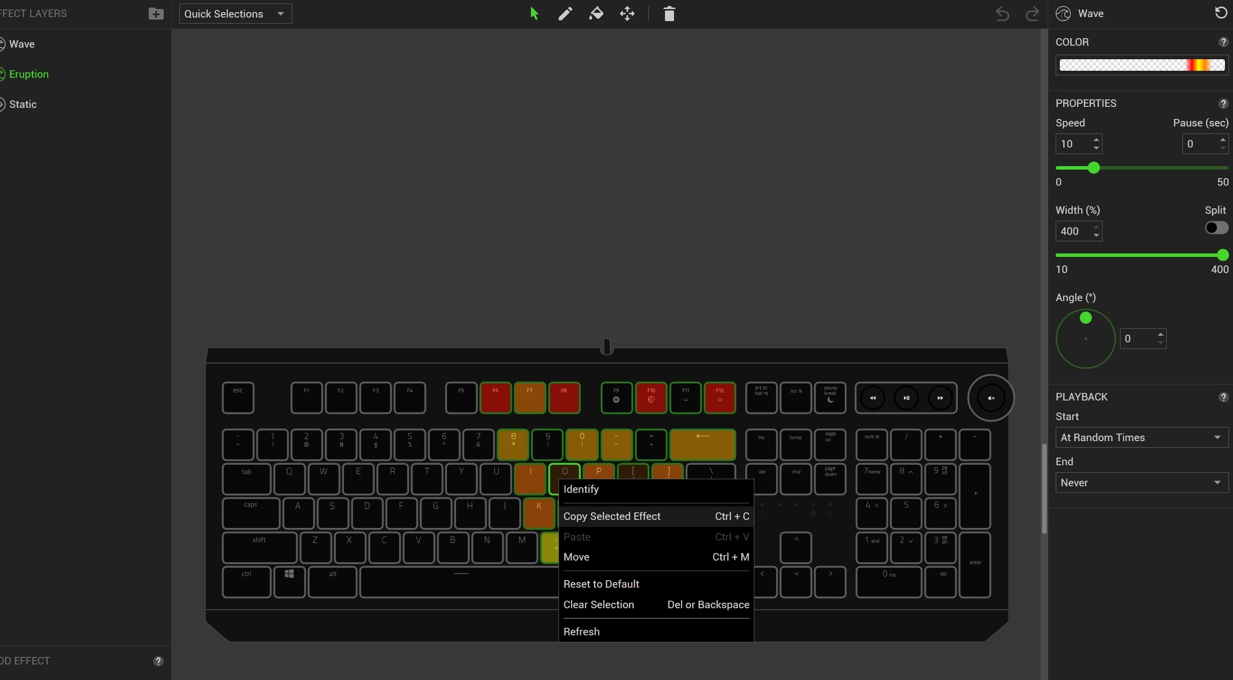 I used to download pre-made profiles because I didn't know how to make them, but once Razer Synapse updated to version 4, the ones for version 3 no longer worked. So now I'm remaking them myself with help from videos from UnrealHero, which has been helpful. I'm trying to remake a profile that he made called Super Volcano. I've followed his instructions exactly. There's a part where he says to copy the effects to another wave layer. The problem is that every single time that I attempt this, the paste option is greyed out. I don't know what I'm doing wrong and feel stupid. Yes, I'm certain that I've hit "copy."