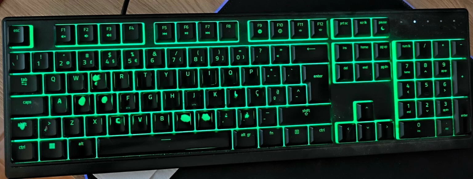 I am based in Portugal and I own a Razer Ornata V3 keyboard. My wife also owns the same model. As you can see in the attached photos (up one is mine, the down one it’s her), both keyboards show the same issue: several keycaps are badly worn out and almost unreadable.