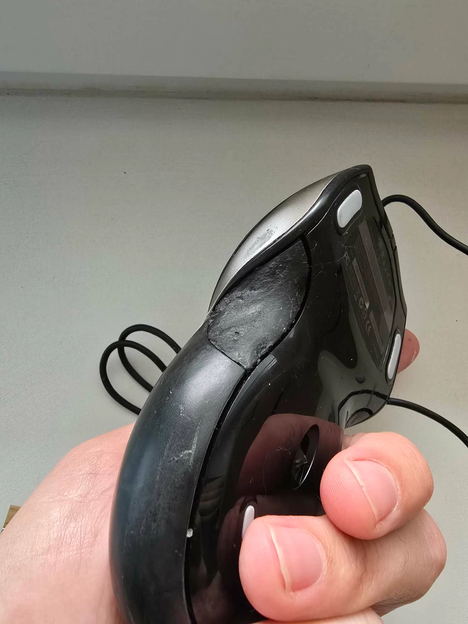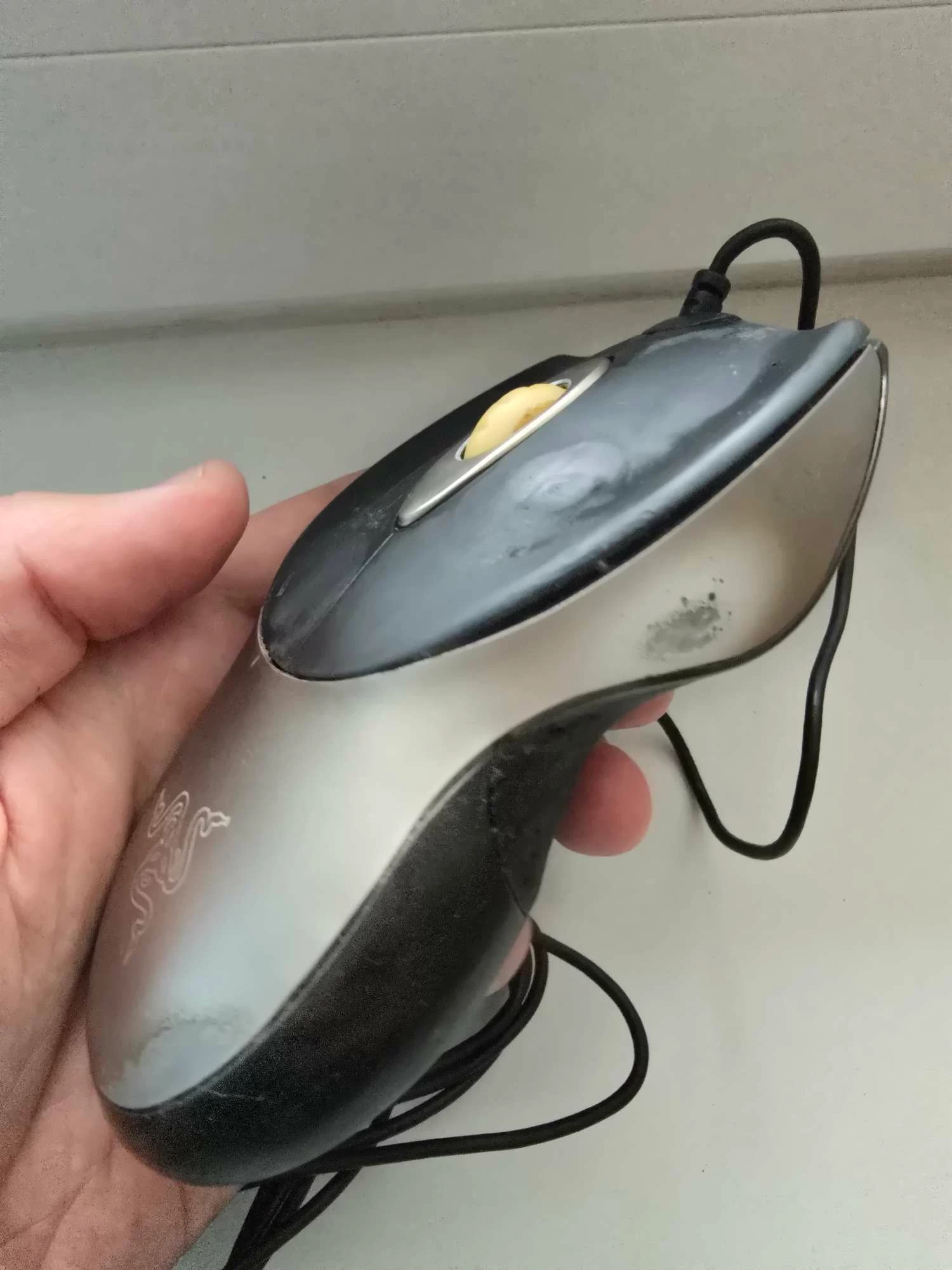 Thanks to my little bro, this one mice had to see some shit. Electronic part is in perfect condition. The case is bad. Soft touch and rubber parts almost dead.