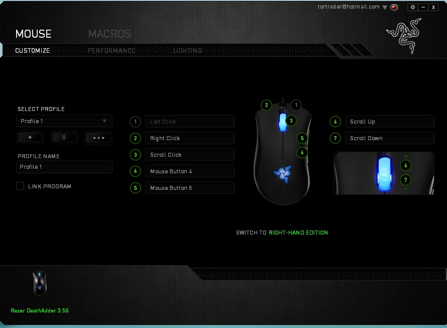 I’m installing this mouse on a laptop that was re-imaged and all my programs wiped. Downloaded and installed Synapse 2.0. It recognizes the mouse but I am stuck with click buttons that match the right-handed version. I am able to toggle between the left- and right-handed modes, but the control never follows.