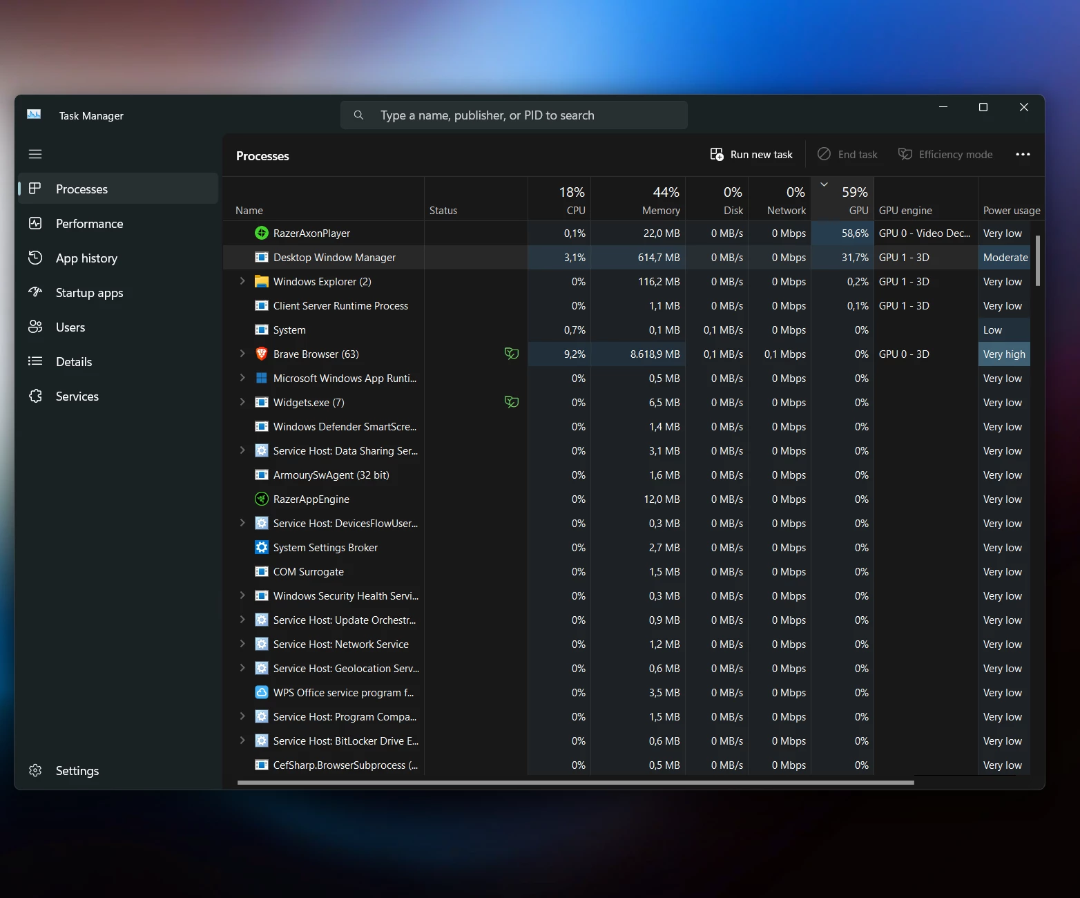 like what the heck video Wallpaper consume 59% GPU. even DWM run on GPU1 (Radeon Graphics)