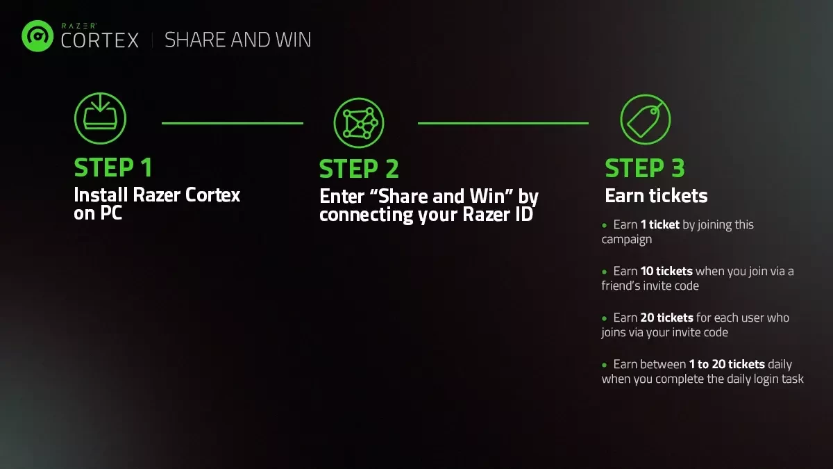 Note: SHARE AND WIN is only available on Razer Cortex 10. If you have Razer Cortex 9 installed on your PC, please update here.