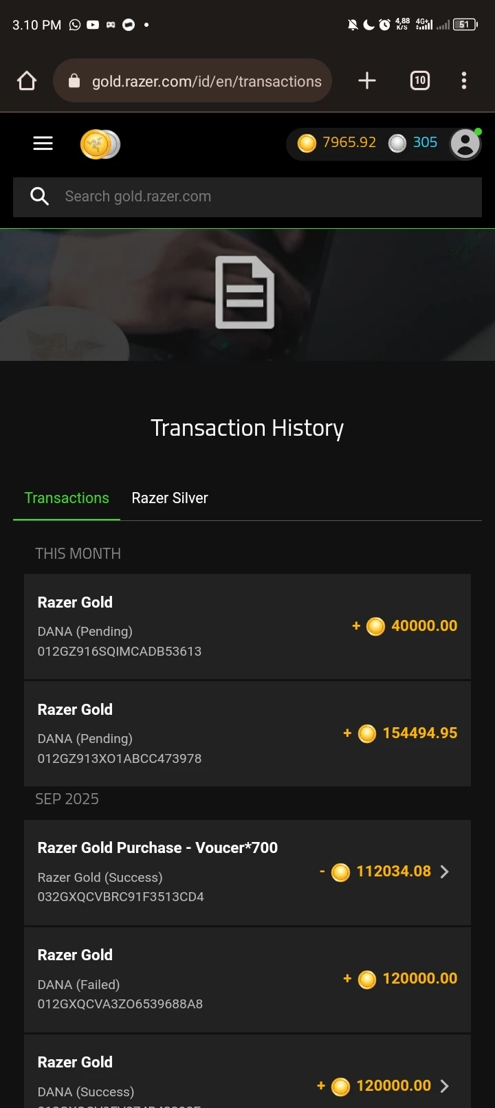 Hello sir I have a problem I reload Razer gold coin my payment successful but not reload my account please help me please clear my panding request my transaction I'd number 012GZ913X01ABCC473978 and 012GZ916SQIMCADB53613
