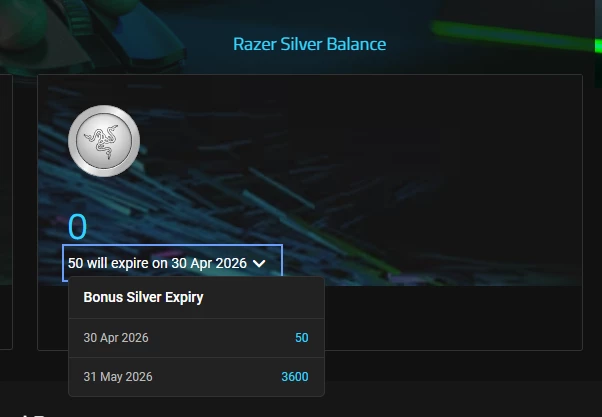 There seems to be a bug when I view my Razer Silver Balance. I have 3650 as shown above, but when I view the Razer Silver Balance, it shows 0.
