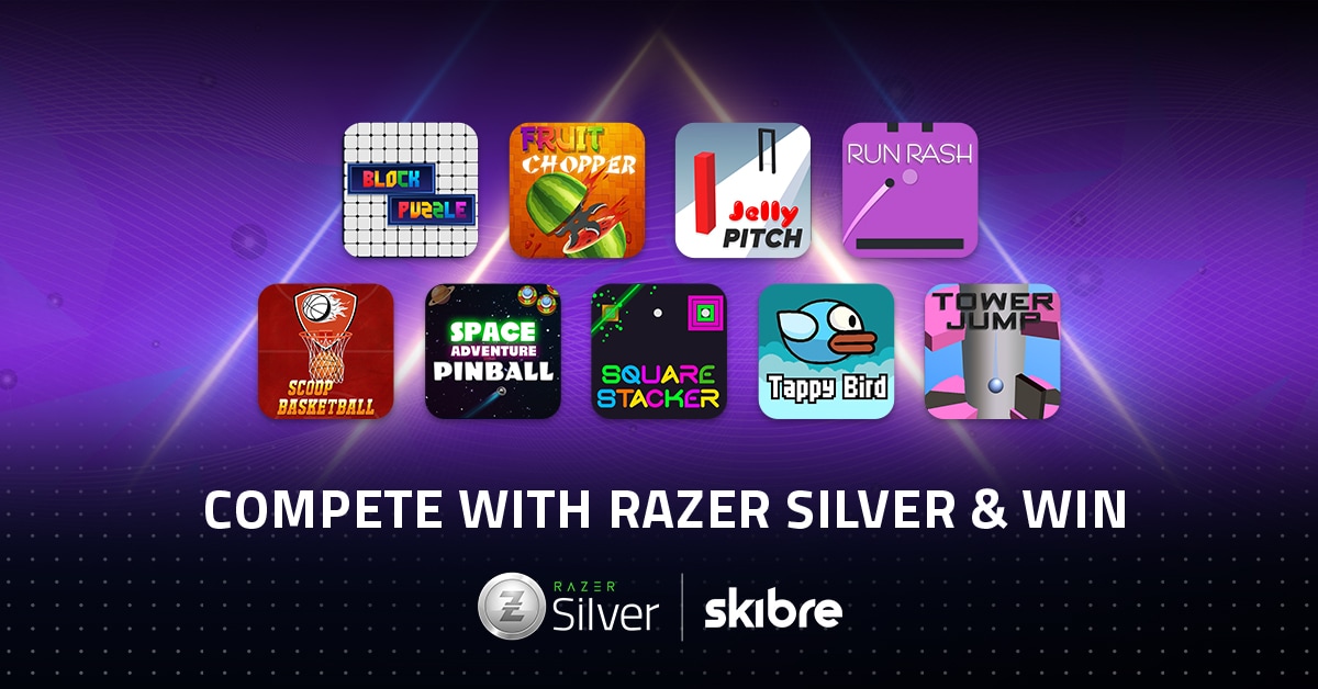 Skibre app – now with upgraded features and rewards! Choose from various single-player or multiplayer games and get matched with an opponent live. Gear up and compete for fun with your player 2 or other online players and score a stash of Razer Silver prizes.