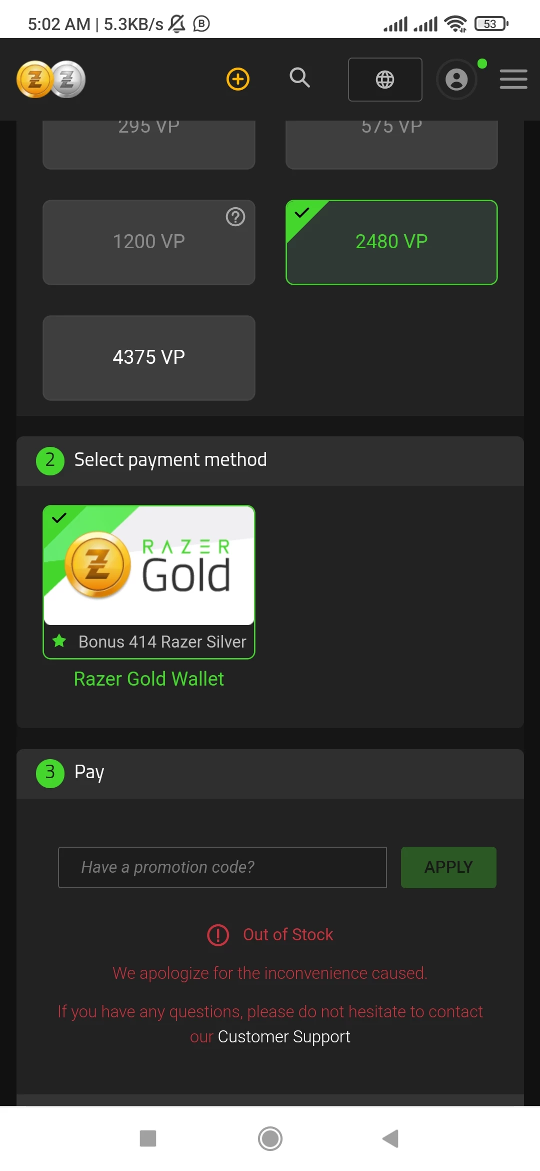 I don't know why valorant points always out of stock , and when i find it available i confirm says it's out of stock