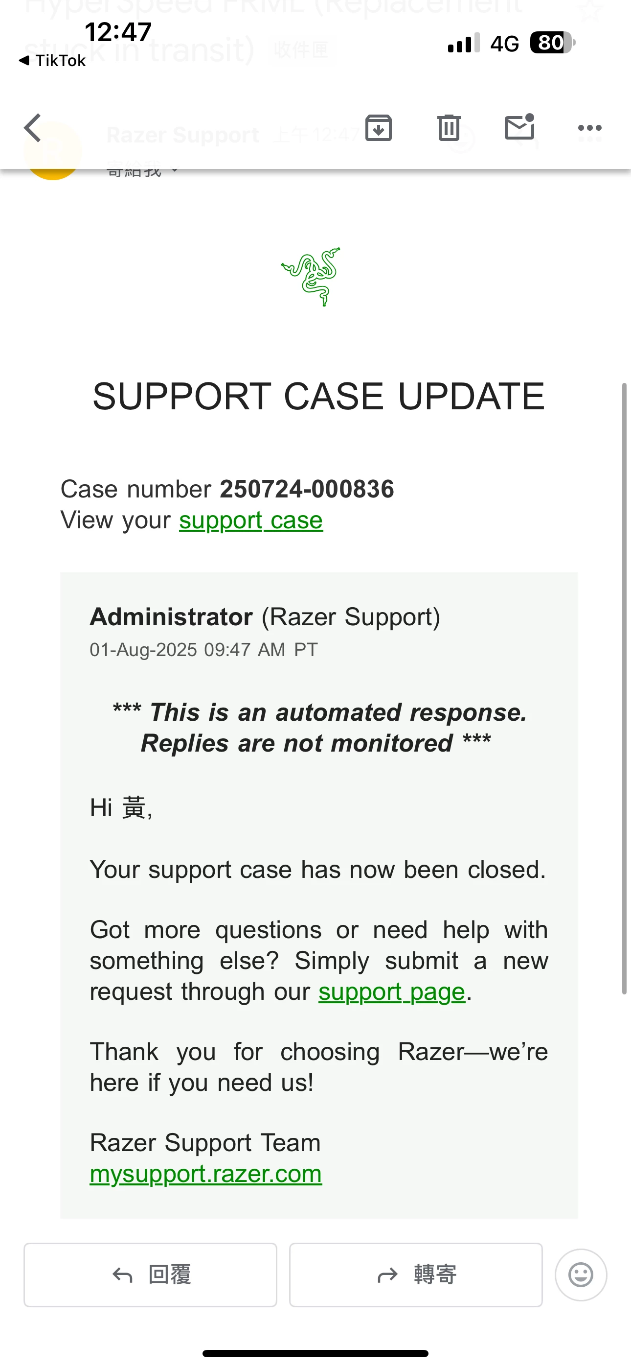 For your reference, please focus on the case ending with the number 1270, as the Razer Support team has replied to this ticket. All the best!