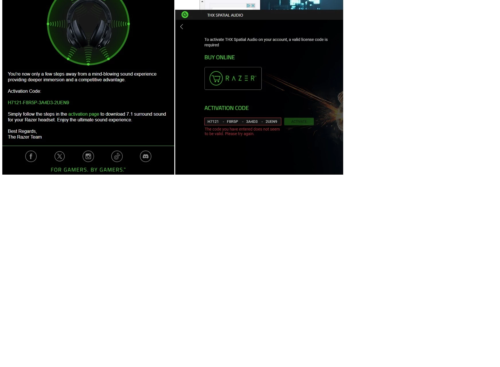 I bought today an Kraken X Lite headset and when I try to activate my headset on thx spatial , I get a message that the code is invalid . Can you help me please ? I got the activation code via e-mail. Thank you