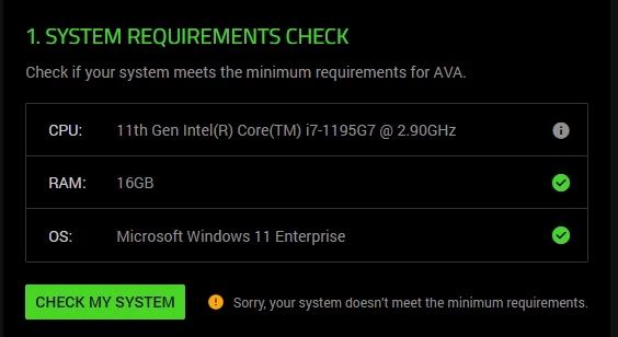 Trying to sign up for the Razer AVA Beta through Cortex. I do the system check, and it’s telling me that my CPU doesn’t meet the minimum requirements. It’s an AMD Ryzen 7 9800X3D 8-Core Processor. I’m pretty sure it meets the requirements. Is this a bug, or what?