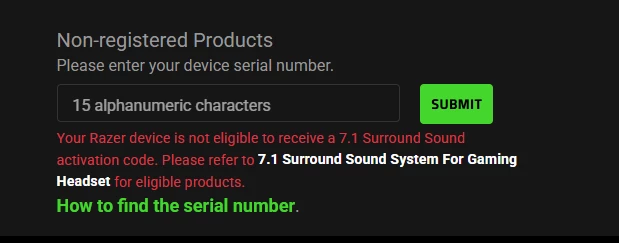 Merhaba geçtiğimiz günlerde razer blackshark v2 x modelini satın aldım ancak 7.1 özelliğini açmak istediğimde 7.1 özelliğini etkinleştirmek için kullanmamız gereken uyguluyamadaki giriş koduna ulaşamıyorum seri numaramı siteye girdim ancak verdiği giriş kodu yine eksikti rica etsem mailime iletebilir misiniz kodu