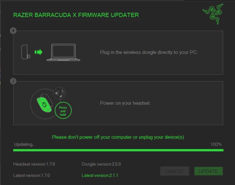 While they work perfectly for audio via both the dongle and Bluetooth, the updater fails to detect the device, despite my careful adherence to the provided instructions.
