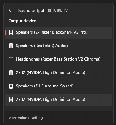 What’s strange is that when I go to select the audio output, the Blackshark v2 Pro shows up as ‘Speakers’ and the Speakers show up as “headphones”.