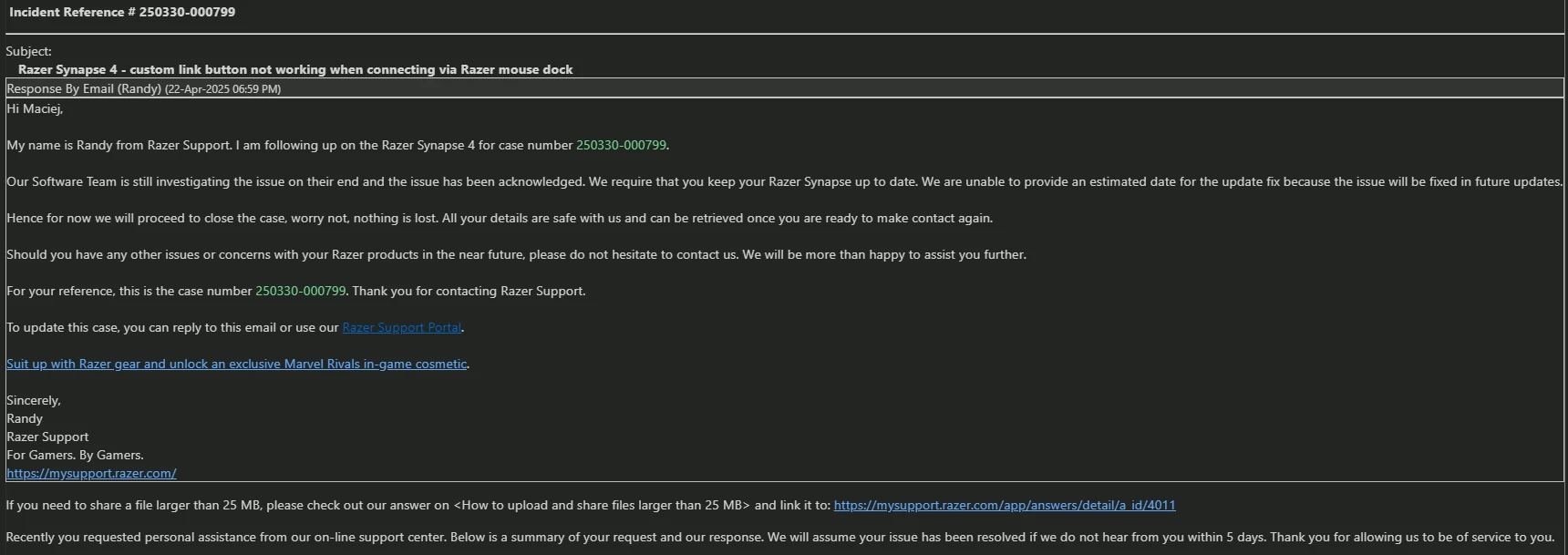 However, the problem occurs only when the mouse is connected via the Razer Mouse Dock Pro. In this mode: