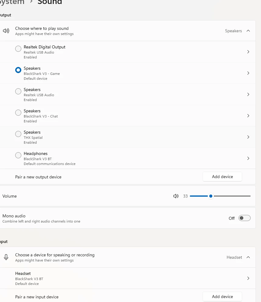 All the guides state that the mic should state blackshark v3 chat but that appears in the outputs of which i have 3 of various quality (the BT out put is trash)