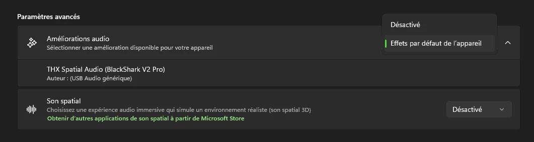 If I use this Windows settings (allowing the native THX Spatial Audio enhancements) :
