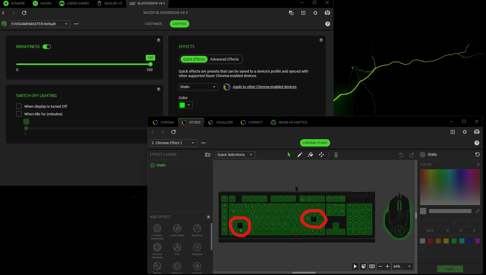But as soon as Synapse 4 load a profile this key # and key < not light up any more stay black.