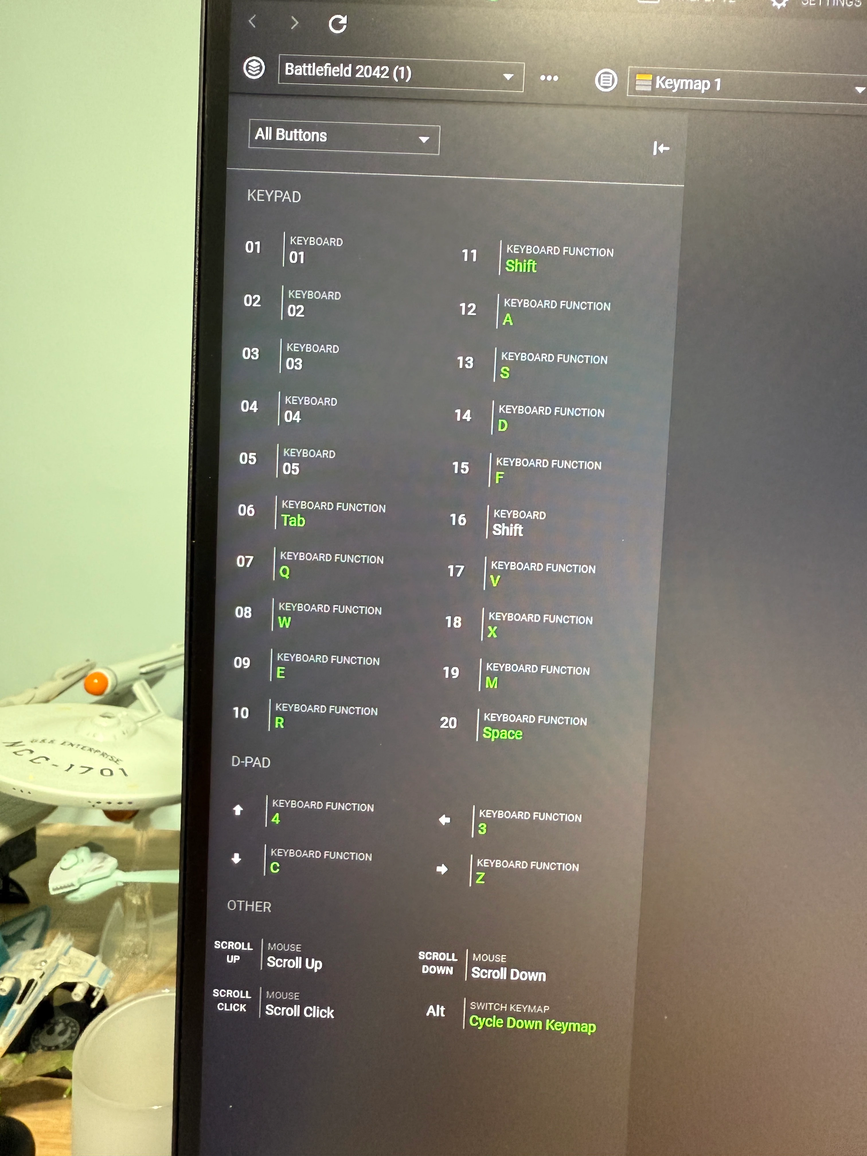 - Assign d-pad down to a keyboard alphanumeric letter A