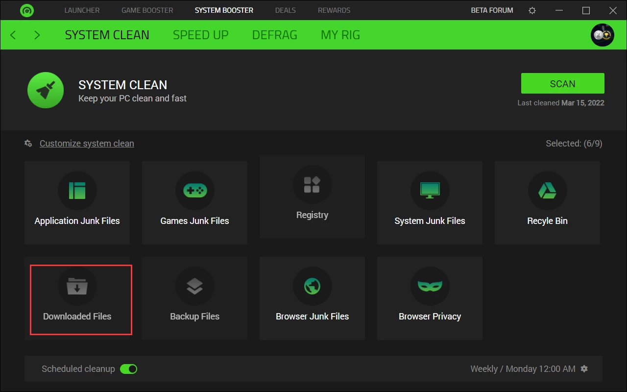 Hey there! Thank you for sharing your concern with us here. My name is Michelle from the Razer Cortex team. I am so sorry to hear that your files in the downloaded folder were removed. To avoid such issues occurring again, please remove 'Downloaded Files' from your system clean list in Razer Cortex > 'SYSTEM CLEAN' > 'Customize system clean' > 'Downloaded Files'. Please make sure the icon of 'Downloaded Files' is not selected. I attach an image for reference. Please try to google some hard drive recovery tools to try whether your files can be recovered. Best regards, Michelle