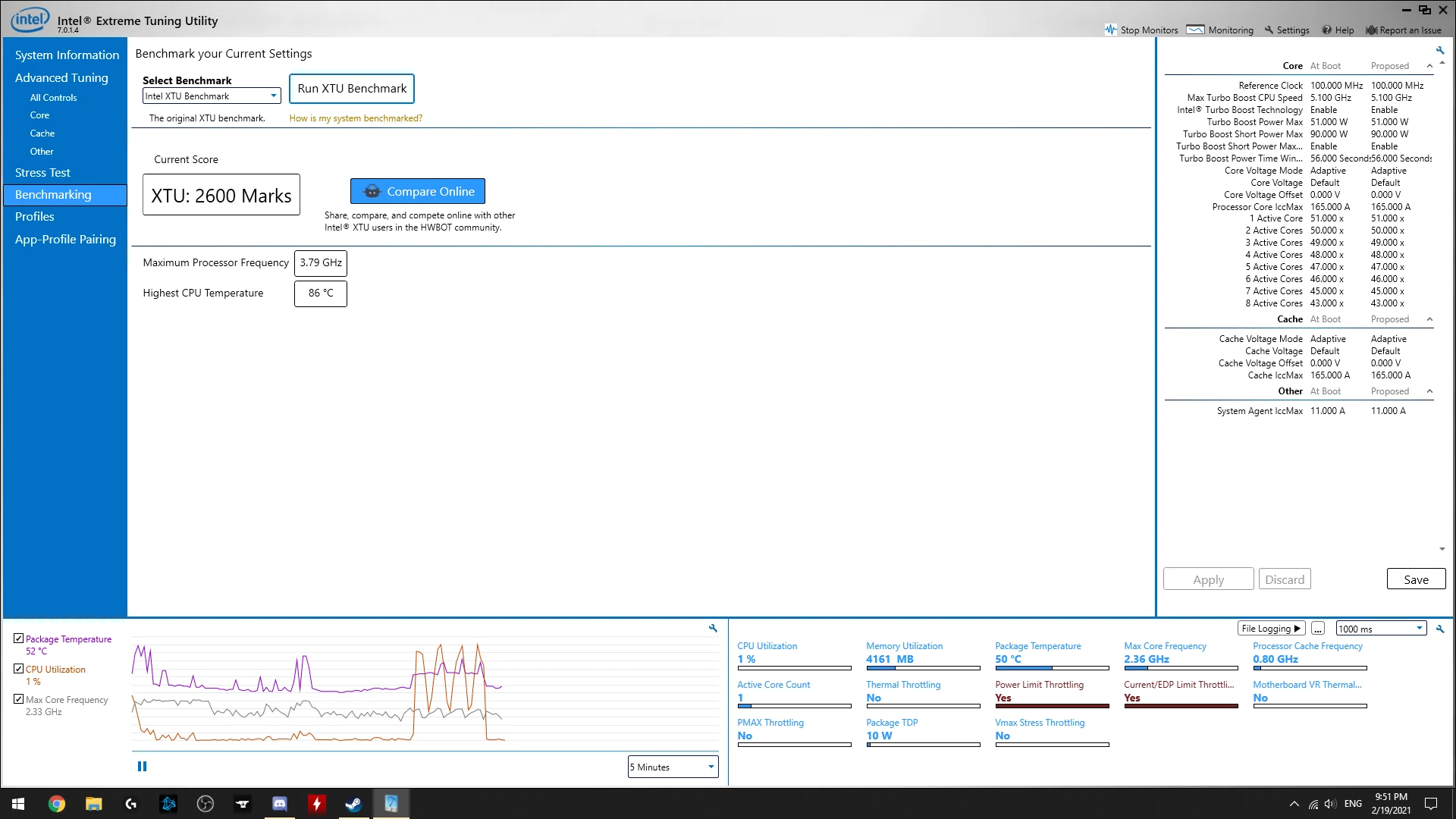 CPU Is just constantly power throttling is what XTU tells me anyway ..