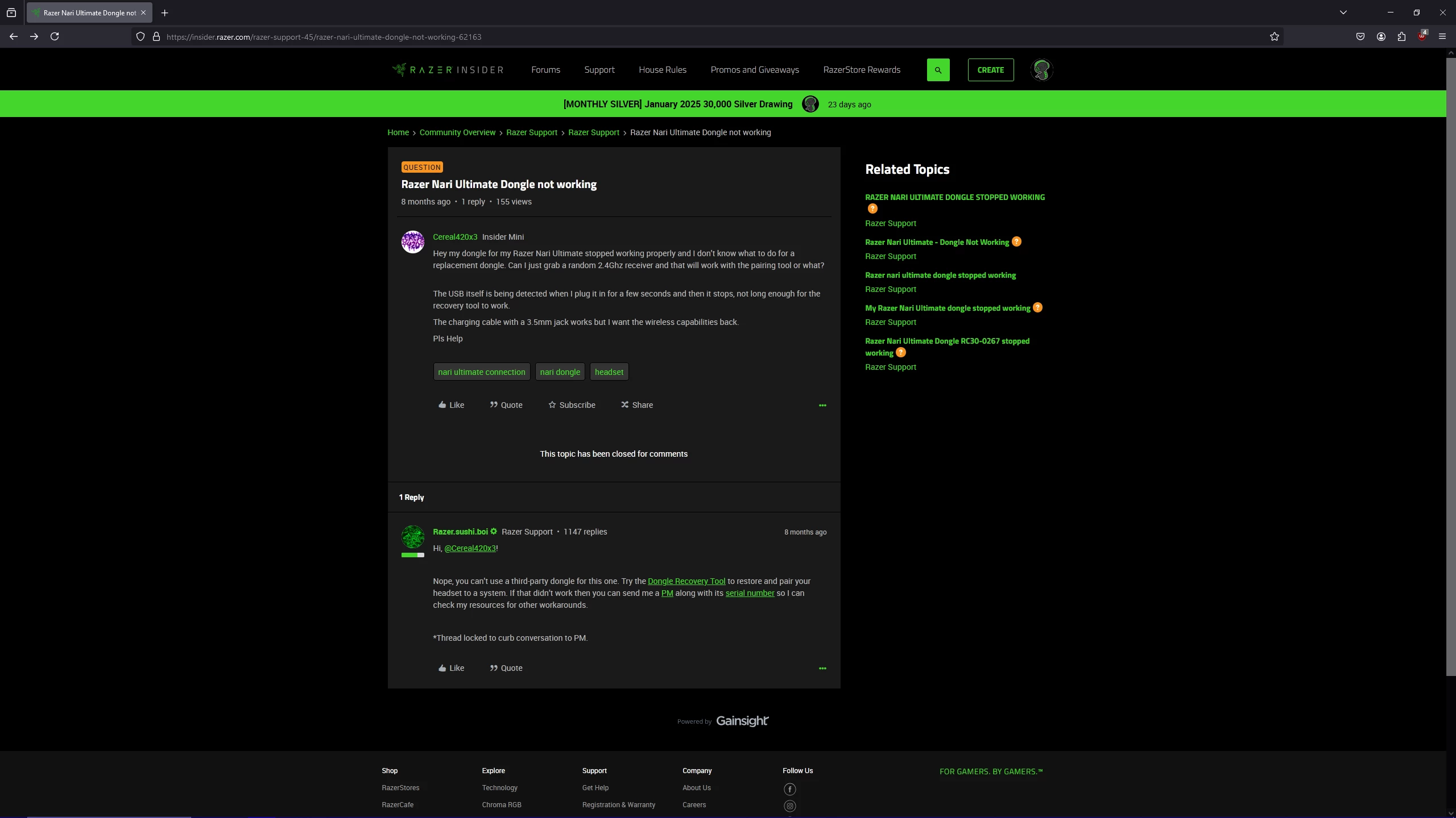 Dongle for Razer Nari Ultimate headset quit working | Razer Insider