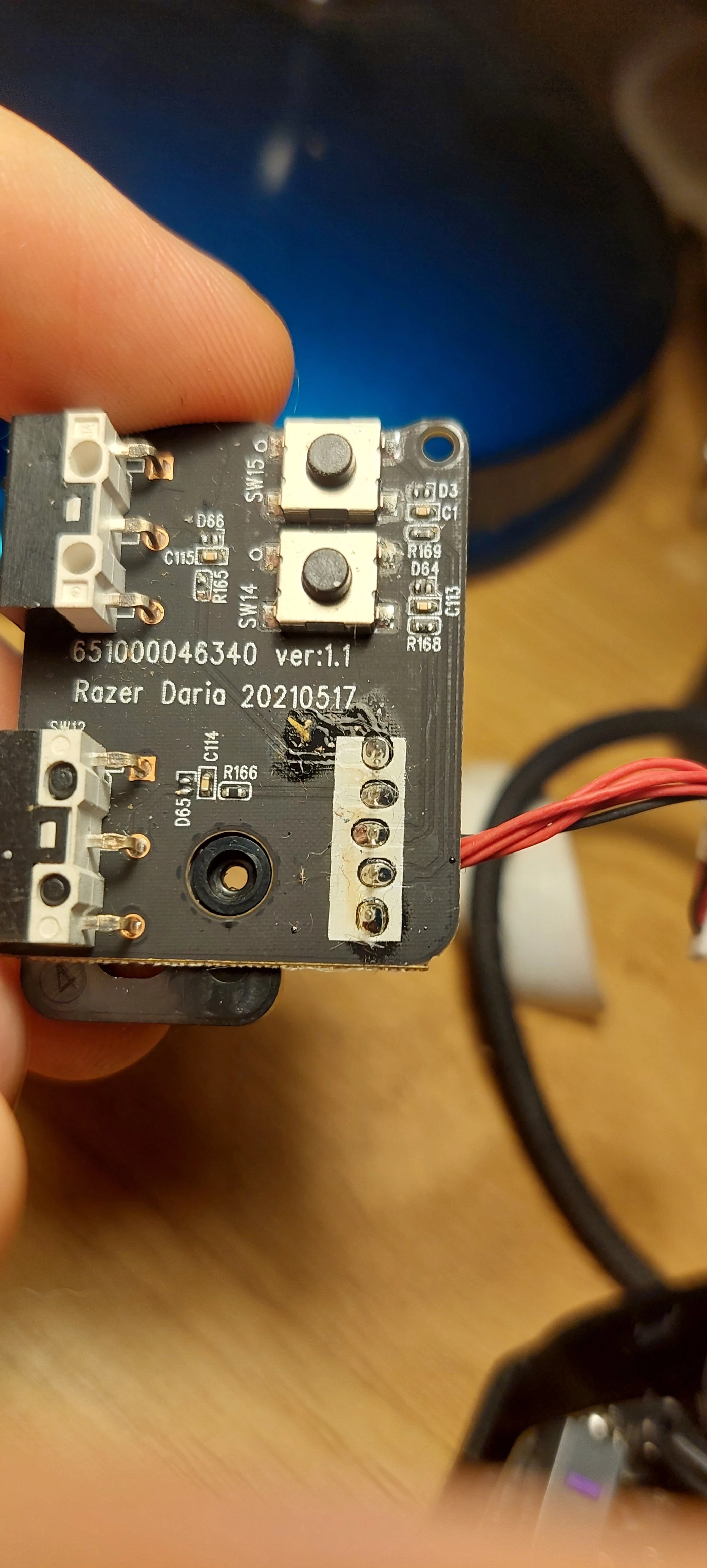 I am dismantling my razer basilisk v3 due to persistent issues as an effort before the last ditch effort. I found gunk on the board that resides in the top shell, the razer daria 20210517. I don't know much about this area, and couldn't find resources, so can someone tell me if this might be the culprit of the problems? If so, how do I safely fix it?