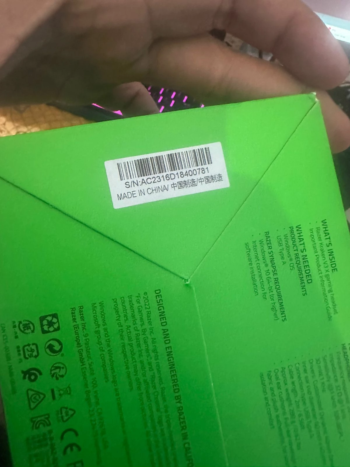 I didn't get the activation code when I bought the Kraken V3X headset, the headset had arrived and I tried to activate it on the Razer ID website but when I entered the product it was hampered by an unreconigzed serial number. I have the purchase data