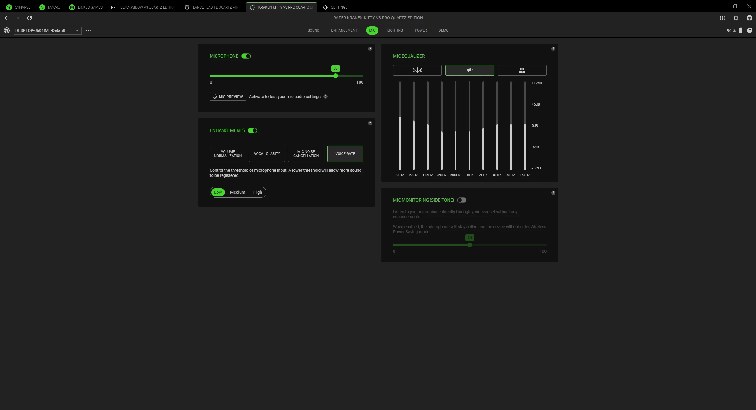 I’ve recently bought the Kraken Kitty V3 Pro and I’ve been trying to find settings for my mic but every time I do I see something completely different. The settings there I can not change myself and need to choose one of the 3 settings that are already there. Is there a way to change it or which one do I choose as my mic sounds like dogshit right now.