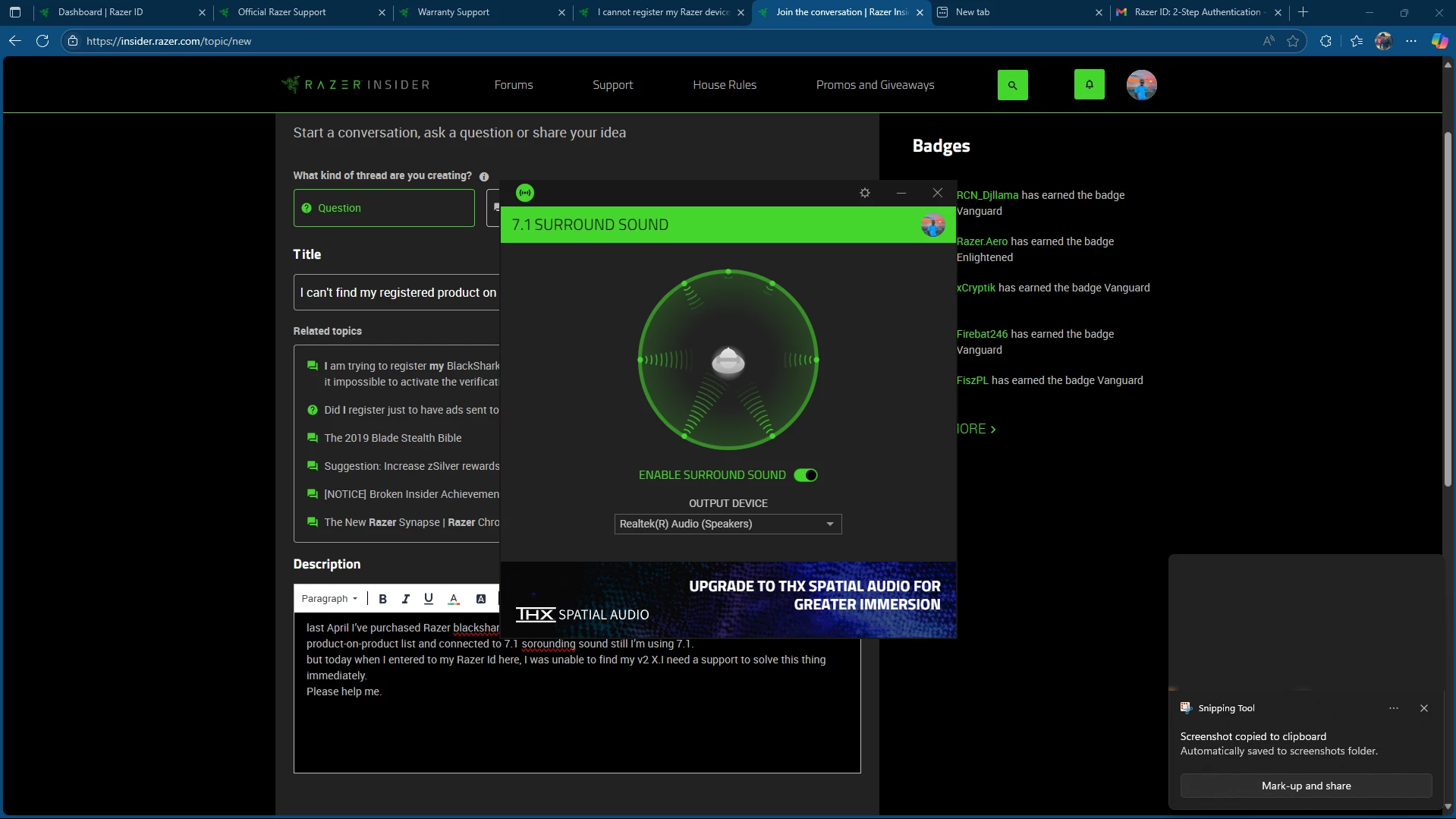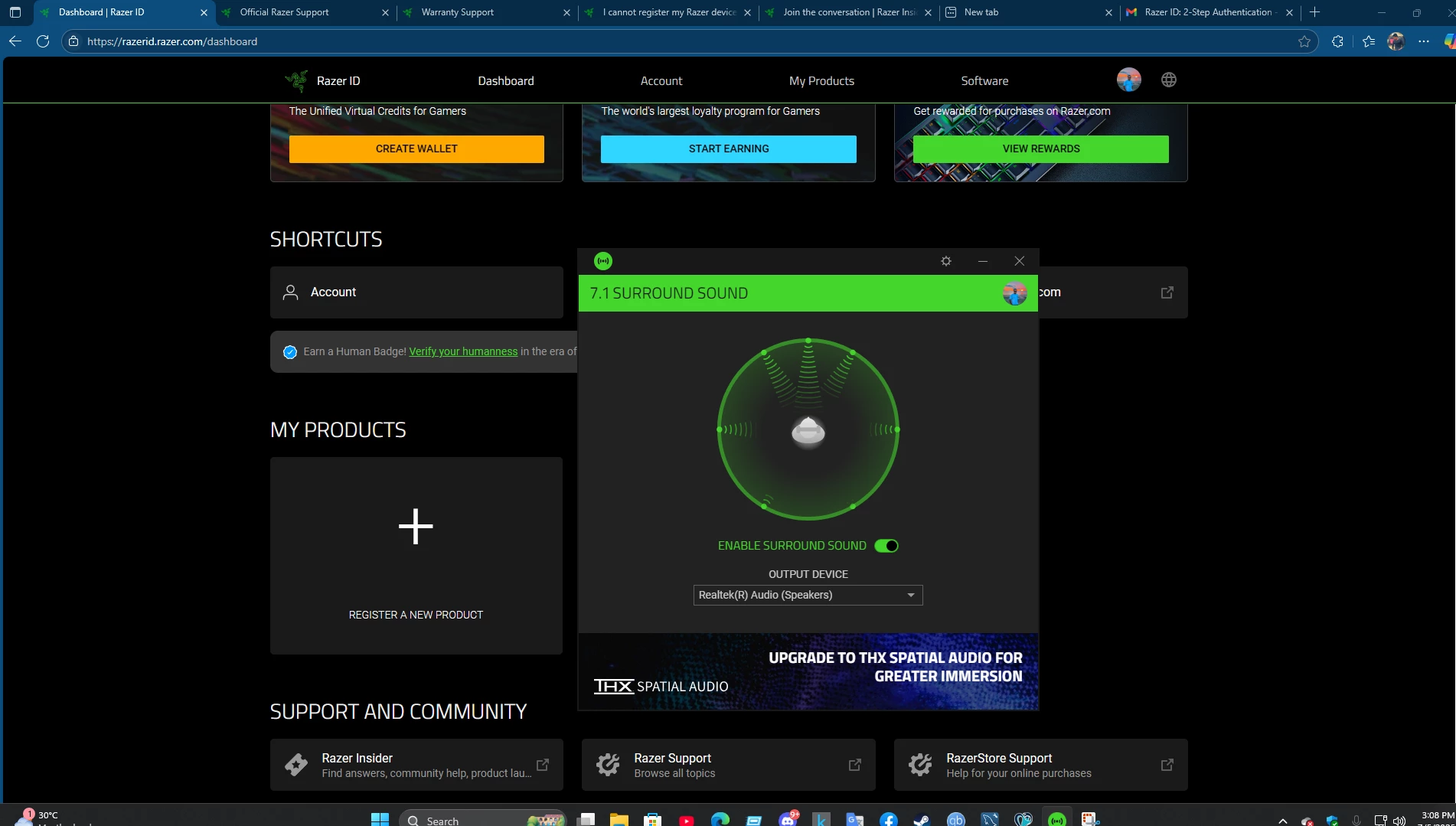 last April I’ve purchased Razer black shark V2 X from an authorized dealer. I have completely registered my product-on-product list and connected to 7.1 surrounding sound still I’m using 7.1.