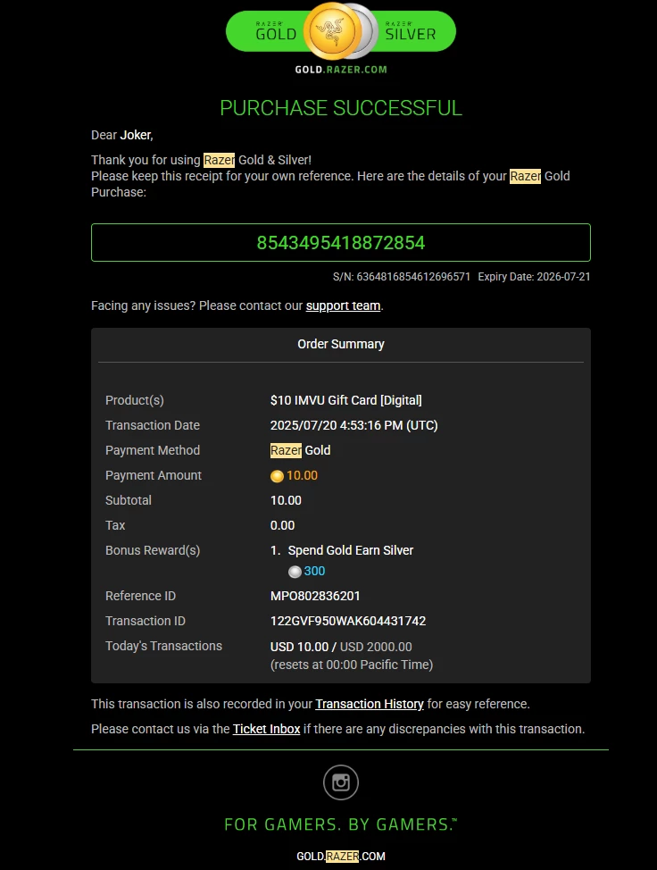 I can no longer access the phone, and I don't even remember the authenticator account linked to my Gmail account. I've attached a screenshot of my last purchase and another old transaction. I can access the Gmail account linked to my Razer Gold account.