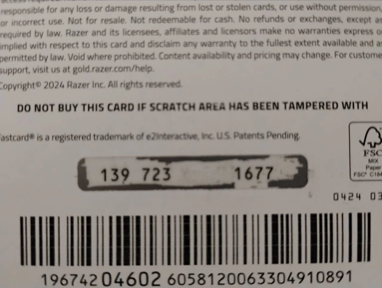 That's it. I don't know how this happened but I need to get the code. Please help me. I have the receipt and everything. I scratched careful but it went off