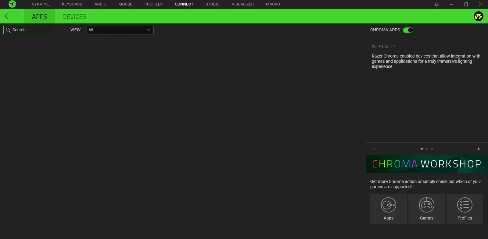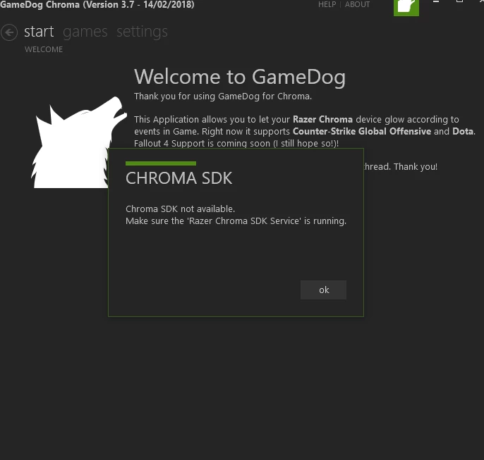 Hello! I have issues when I try to syncronize games with Synapse. When I downloaded Gamedog (For Dota 2)... it shows... "SDK is not running",and also when I go to Chroma Apps (Connect) It appears nothing. I have the same issue with "Discord Chroma". I was looking in processes that service and I see that is running, idk what to do :c. I was thinking download SDK but Razer says is automatically when you download Synapse 3. I need your help :C