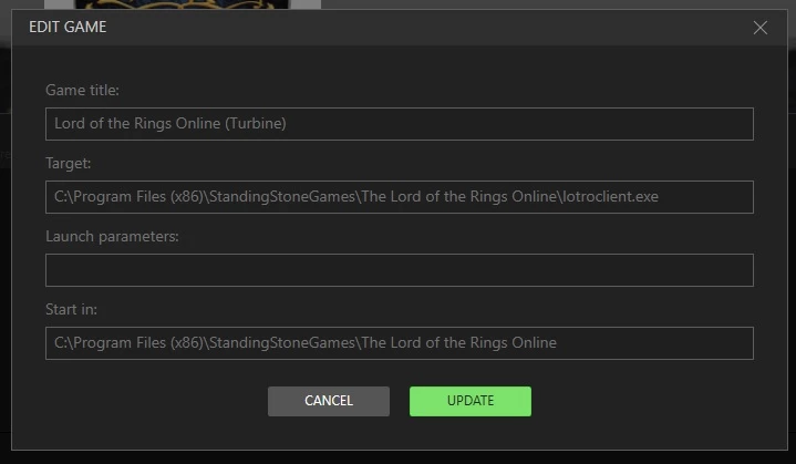I'm here to ask some help. I'm trying to play Lotro by Razer Cortex, but it uses a wrong link to open the launcher.