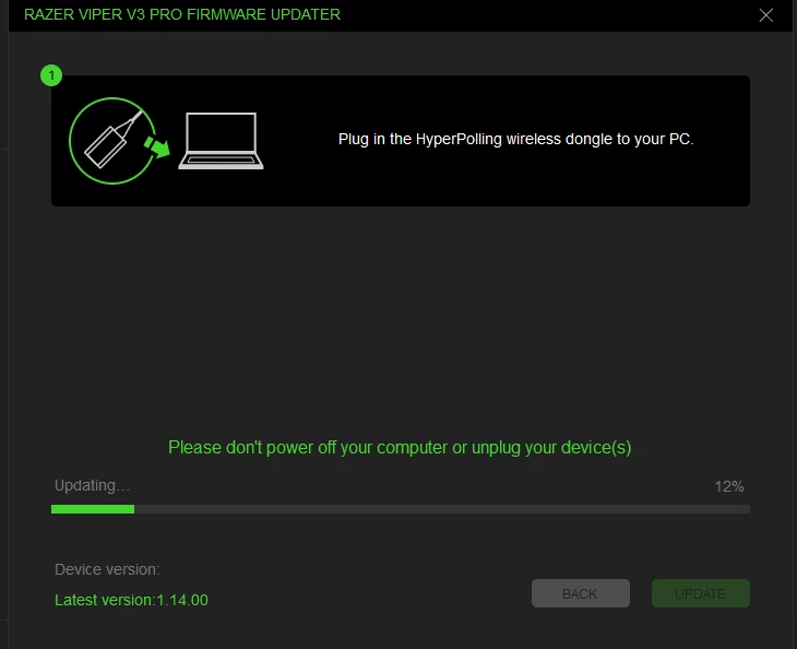 The firmware updater says the dongle version is blank, and in synapse it says the mouse is disconnected