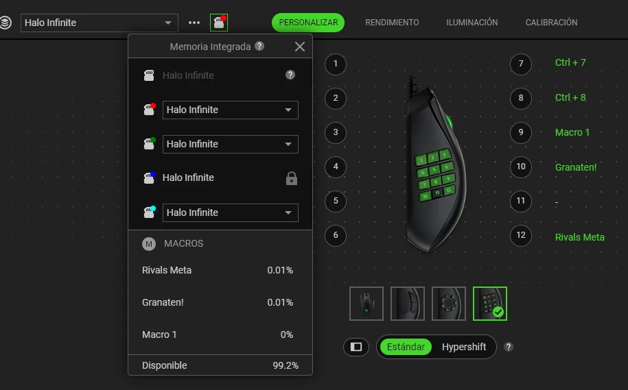 I use the custom one… and every button as said works fine. If I press the button on the bottom of the mouse it changes colors matching the memory integrated profiles (but all 4 of them I have setted the custom profile).