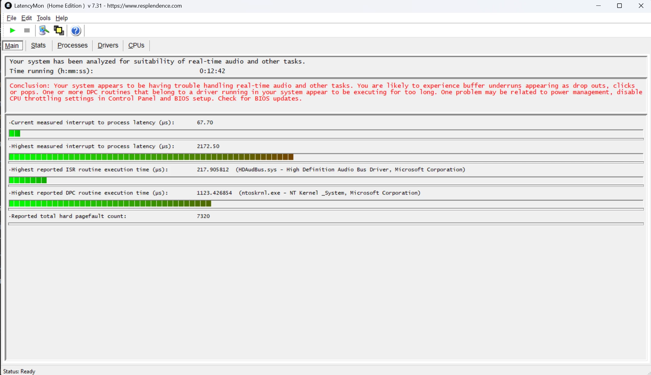 Does anyone have an idea what could be causing this? LatencyMon reports that the drivers nvlddmkm.sys, ntoskrnl.exe, and dxgkrnl.sys are causing issues, but I have no idea what to do with that information. I’m just frustrated that this started happening after the return period expired, and neither driver updates nor a fresh Windows installation have fixed it.