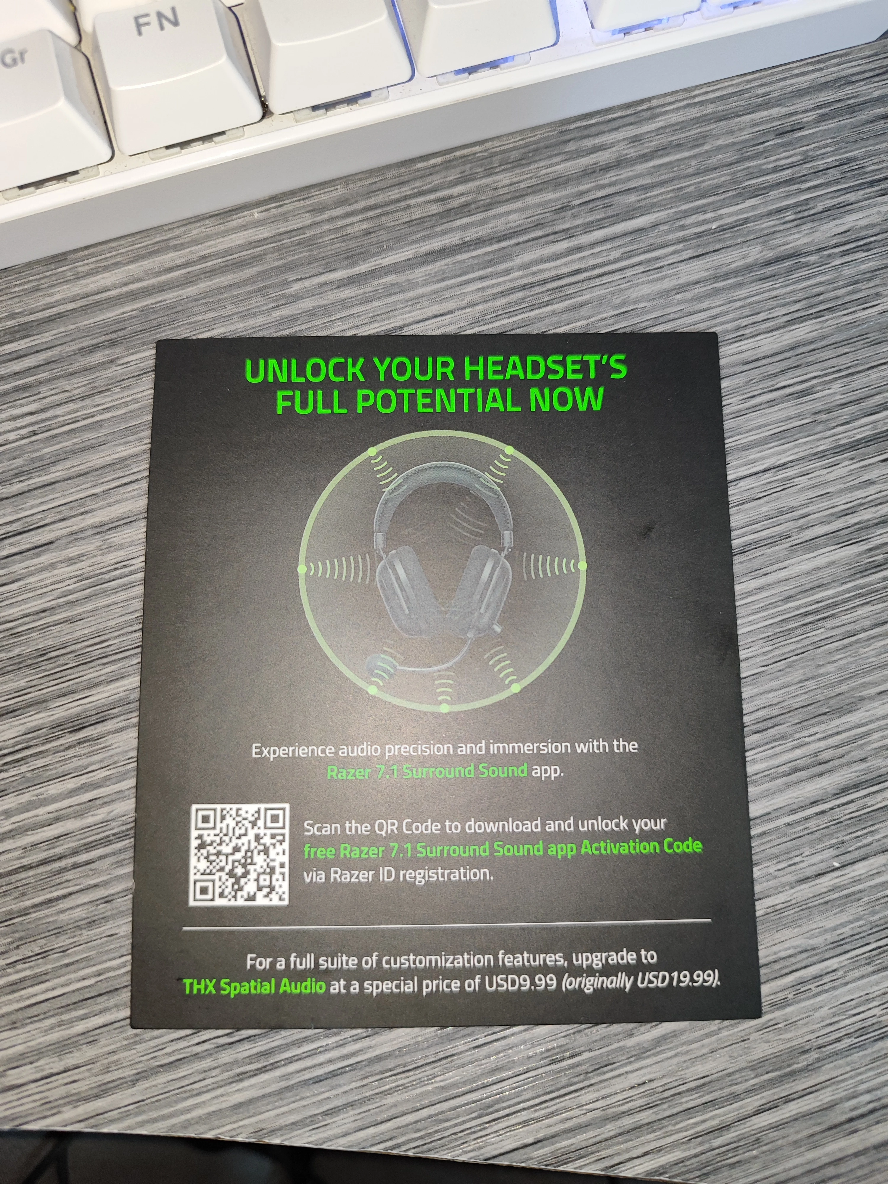 no vino el codigo de audio 7.1 de mis razer blacksarkv2 x white edition