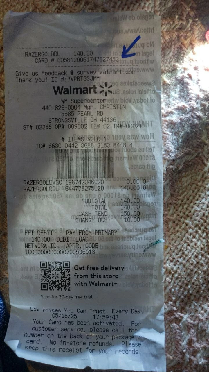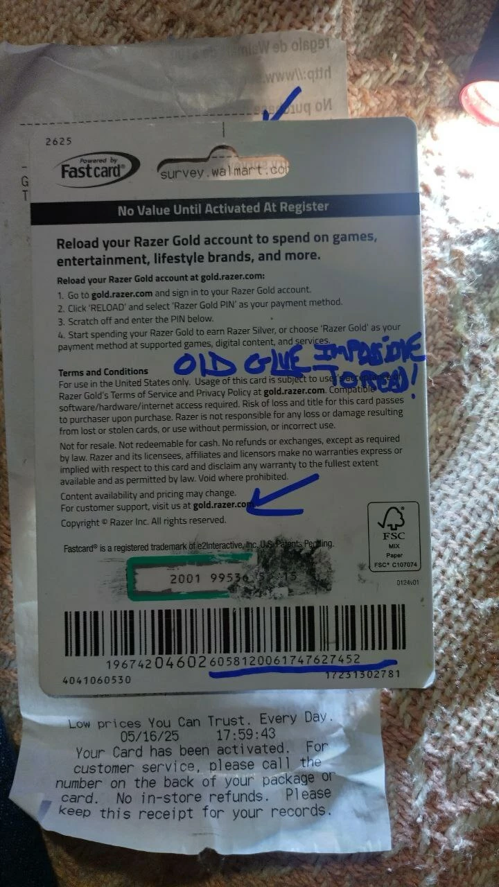 purchased a store card but scratched off the card i need help | Razer Insider