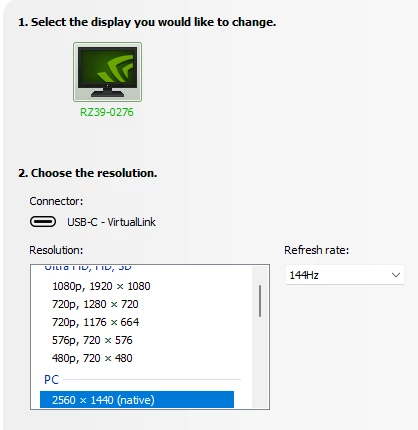 My NVIDIA control panel shows that monitor is plugged in via USB-C:
