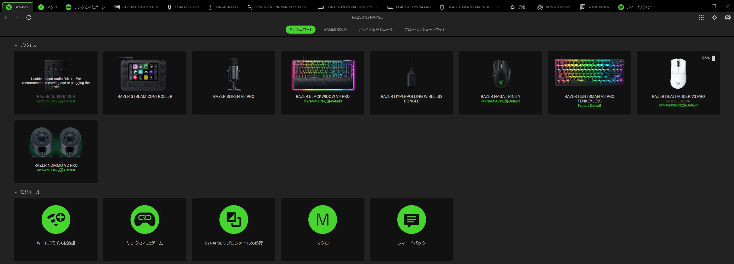 At the moment, the Audio Mixer is detected in Synapse, but I cannot use it properly because of this driver error.