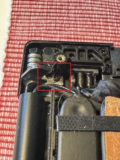 The internal screen bracket that holds the screen connected to the “motherboard part” of the laptop is broken (please see picture).
