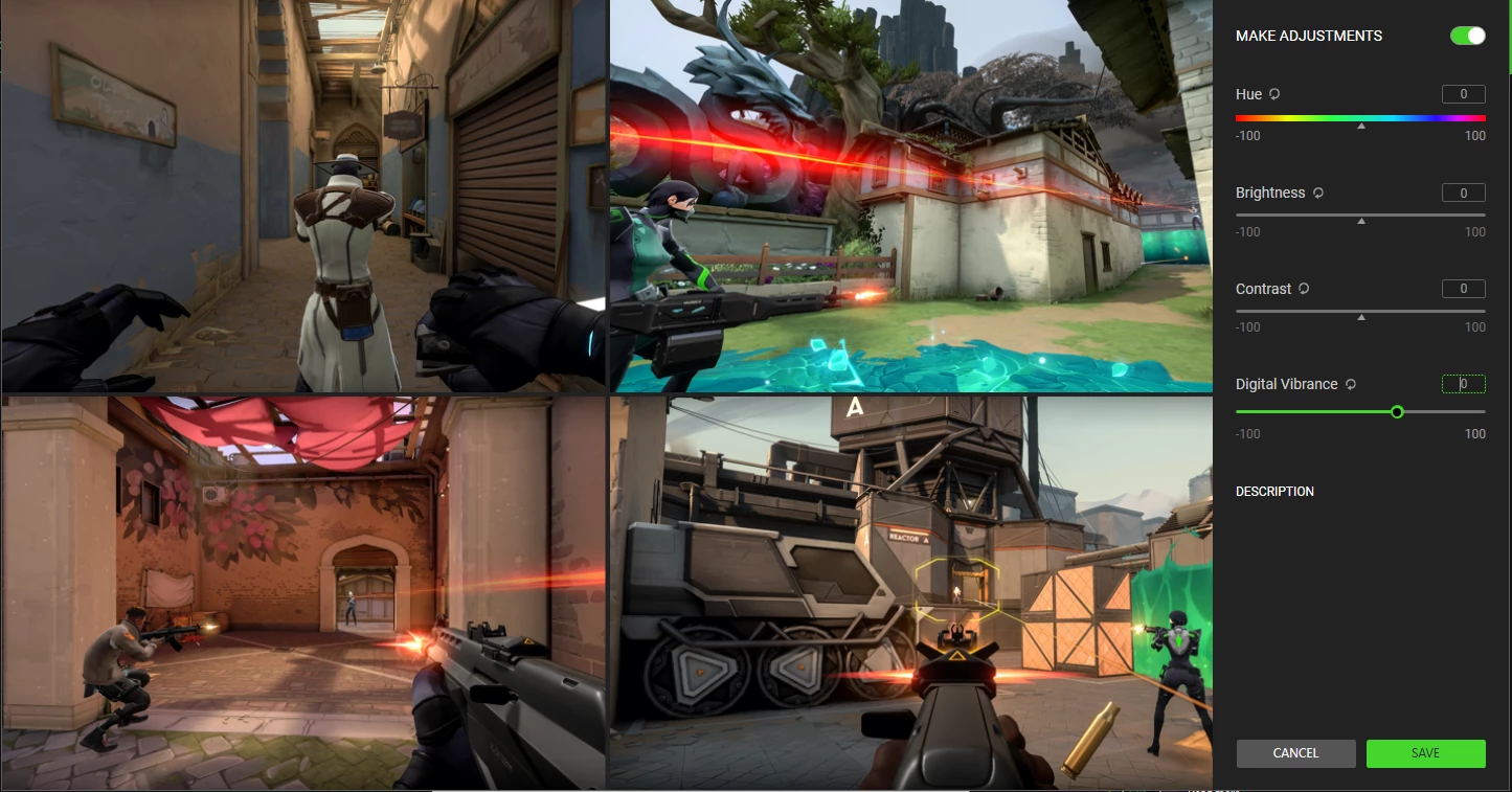 Hey everyone, I recently messed with my digital vibrance for Valorant on Razer Cortex and for some reason it also messed with the vibrance on my other games (including my desktop.) I wouldn't have such an issue with this but it makes colours in my other games (and on my desktop) look like crap. I keep switching the "make adjustments" tab on and off after resetting the vibrancy down to 0 but its not doing anything. I've also tried restarting my computer and even deleting the software.