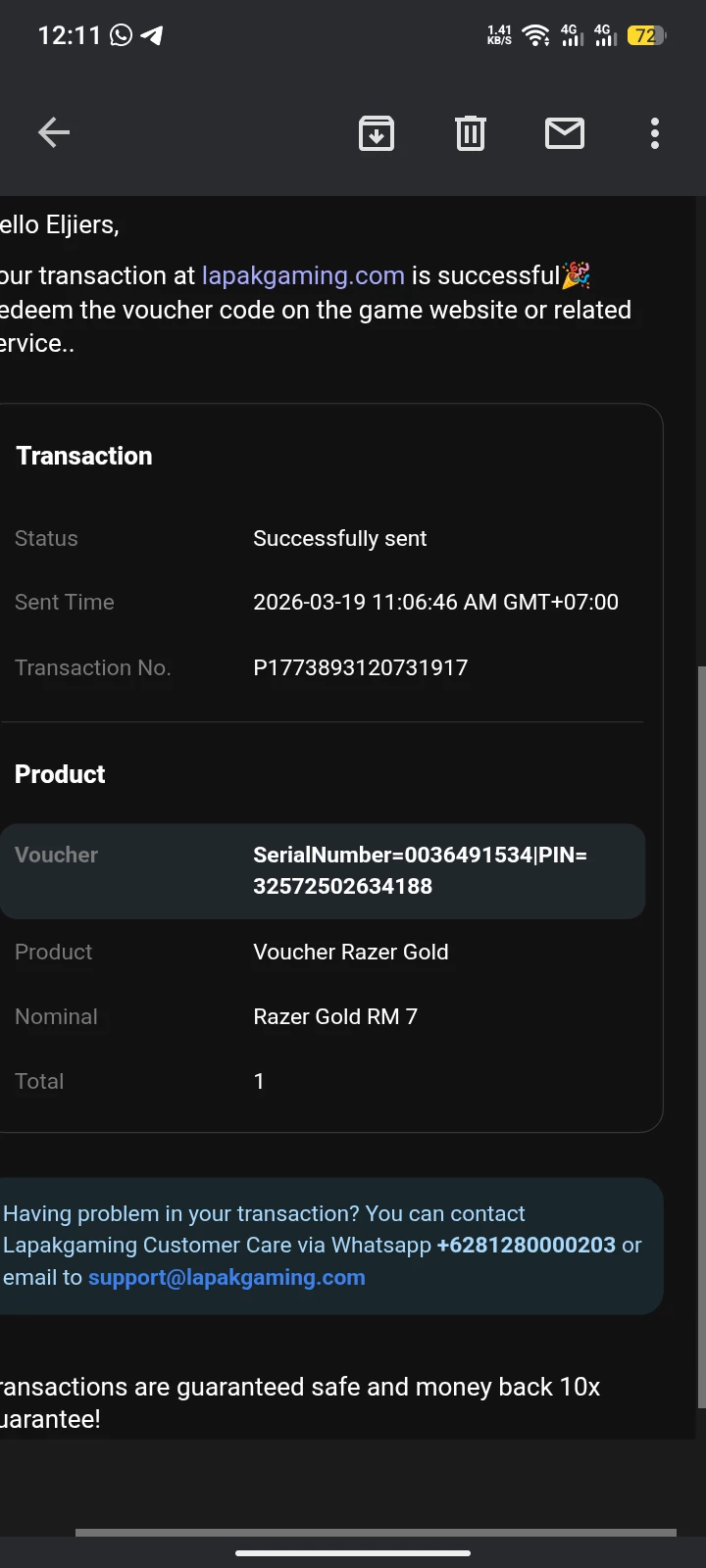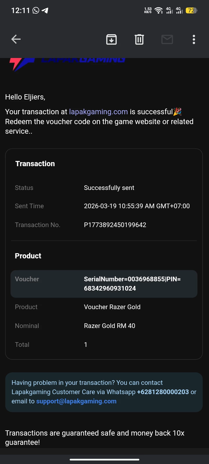 For all Razer Gold concerns, please submit a ticket by going to this link so our Razer Gold Team can assist with your transaction. After doing so, just send me a PM with your ticket number so I can call their attention to your case.