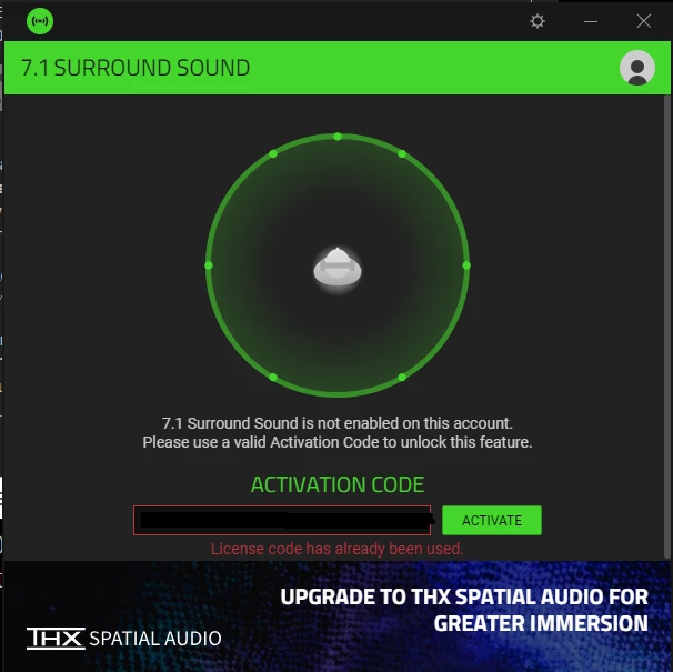 merhabalar RAZER RZ04-02950100-R381 HDS Kraken X Lite kulaklığını aldım 7.1 aktivasyon yaparken daha önce kullanılmış hatası alıyorum yeni bi kod alabilir miyim yardımcı olur musunuz