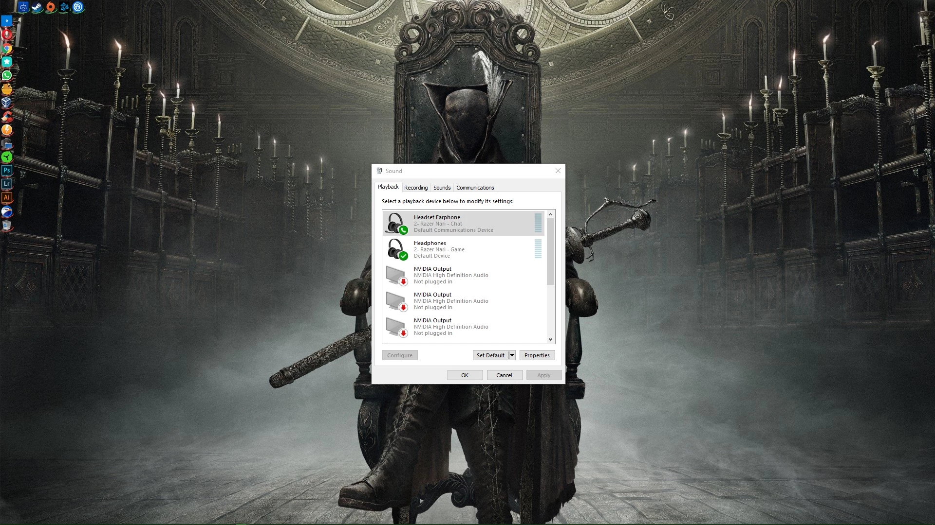 recently I got a Razer Nari headset, I've followed the manual book to set up the headset on windows 10, you can check the picture here. Now the problem is I don't hear anything when its set like this but sound works fine when I set Razer Nari chat as default device but if its set to this option then the EQ doesn't work more as clearly this is not the option for listening music.
