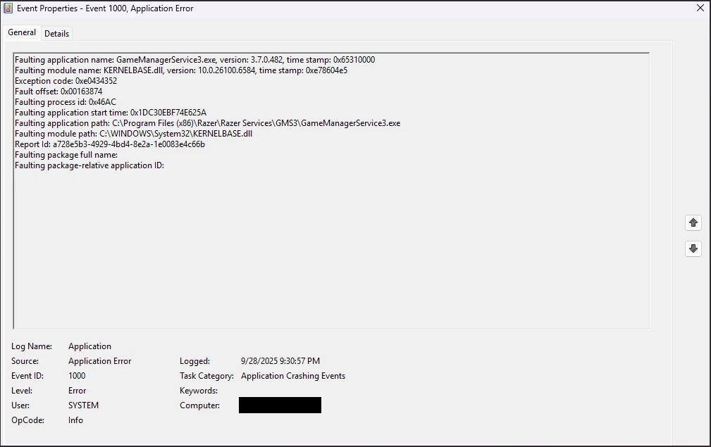 I have a Razer keyboard, mouse and headphones. Today I went to use my machine and no taskbar in Windows 11 24H2 after login. Every minute explorer crashes and the screen goes black and restarts. If I’m patient enough I can get task manager open and kill all Razer software, then I can start an explorer process without it crashing.