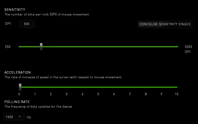 i have a razer abyssus 2000 and my synapse only has dpi preset as 250/500/750 dpi, i would like to know if i can put 400/800 dpi on it