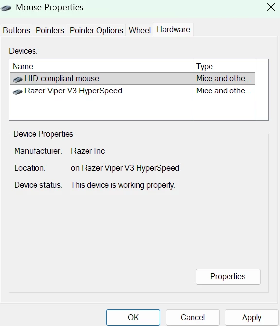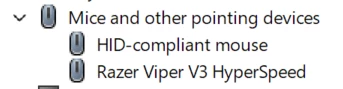 The USB stick appears as Razer Viper V3 HyperSpeed under devices and the mouse as HID-compliant mouse.